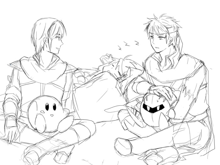 主人公だと思いながら聞いてたらなんかハアハアしてきた。 それにしても去年あたりから好きな人がことごとく浪川声なんですがこれマジックでしょうか。 なんだかスマブラの波が来ている。 というわけでらくがき、全部それなりにでかいのでたたんどきます。 メタナイトは寝てる。 正直王子の足描くのが一番楽しかった。 剣士は全員仲良しだと思ってる。 王子はリュカとかポケトレとか小さい子に好かれると思う。なんでだろう。 というより剣士でまともなのが王子くらいしかいないような気がしてきた。 剣士+α アイクとメタナイトはいつも一緒にいそう。で、アイクに枕にされてそう。 マルスとカービィは仲良さそうだ。なんかこう、周波数が似てる(?) リンクとトゥーンは超仲良しだといい。 どんどんXのリンクがブラコンになっていくけど気にしない。 トワプリはともかく時オカのリンクは鬼畜外道と信じて疑わない。 ただし女性には優しい。 どうでもいいけどリンクは何歳なんだろう。 三剣士の中で一番まともなのは多分王子。 アイクは一人で突っ走るタイプ。 メタナイトは真面目すぎて融通きかない。 基本どっちもワンマンすぎて逆に釣り合ってるみたいな でも剣士でくくればで一番ぶっ飛んでるのはリンクだと思う。 フリーダムすぎて誰もついていけない。 それでも仲良しな剣士組が好きです。 リンクとマルスは普通に仲いいといいな。 でも正直な話リンアイとか好きです。もうだめだ自分。 PR TrackbacksTRACKBACK URL : CommentsComment Form |