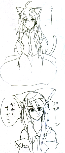 どうしようもないどうしようもないブログですPAGE | 14 15 16 17 18 19 20 21 22 23 24 | ADMIN | WRITE 2009.09.24 Thu 11:21:46 どこまでもれいさな谷山さんの会いたくてと岸を離れる日がレイサナに聞こえてくる病気にかかった。 いつも病気ですねわかります。 会いたくてはどっちかというと霊夢っぽくて岸を離れる日は早苗さんっぽい。 きみのこと知る前は一人で生きることが好きだったってあたりが超霊夢。 岸を離れる日は全体的にレイサナin早苗さん過ぎる、どうしよう。 レイサナの何がいいかってどっちも消えそうなくらい儚いことです。 霊夢はなんというか単純明快なのにつかみ所がなくてふわふわしてる(?)感じで 早苗さんは存在自体がもんのすごい不安定な感じがする。 外から来たっていうのと現人神っていうのがものすごく孤独に見えてならない。 霊夢は一人が好きってイメージがあるのでそれも相まってなんかロンリー。 霊夢と早苗さんはどっちも相手のことをすごい儚いと思ってそう。 だから近くにいたり触れてたりしないと落ち着かない。 二人とも一旦別れたらもうそのまま会えない気がするんだ。 だから毎回会って別れるのが辛い。 巫女さんだからお仕事もあるしずっと入り浸るわけにもいかないから仕方ないことなのに 言い聞かせてもいつまでたっても慣れることがない。 なんかこう、2人でどっかに逃亡したりするれいさなが見たい。 かけおち!かけおち! らくがきがきーれいさなでもなんでもない気がするこれ にゃんこ!にゃんこ!にゃんこおおおおおお! 早苗さんきっと耳すごい似合うよとか思いながら描いたらこんなになった、そういうことです。 今日一番頑張って色塗った。 幽々子さまを描くのは楽しいです。 PR 2009.09.18 Fri 01:59:46 んあーーー眠れない!