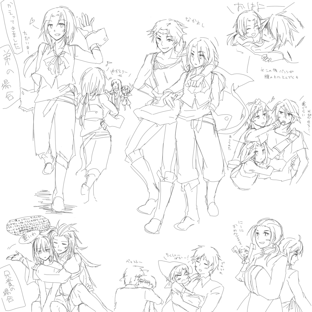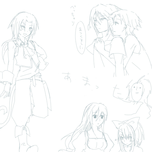 ユフィ最強きたあああ メンバーはクラウドとユフィとシドでした それにしても…自分のデータほとんどユフィいる わかりやすいにも程があるだろ やっぱり9のやつはなかったから最初からやることにした や、やべえまた泣いちまった… 何度見てもダリのイベント慣れねえ… ビビが愛らしすぎて今ならご飯三杯食える きぁっ!って…おまっ可愛すぎるだろ!殺す気!? あああああかわいいなああああああうちに養子にくる気はないかい!!!!!!! あとダガーの頑張りが癒される ムービーみてからジタンのベスト?がディシディアと大分違うって気付いた。 今はリンドブルムにいます フライヤさんktkr 次は狩猟祭だ!残しとこう こっから違う話 バサラあれ…長政ぁああ ま、まさかこんな序盤で…友達が言ったことは嘘じゃなかった アニメの長政のどこが好きかって正義正義うるさいところです 夫婦の絆には感動しました 光秀はどんな状況でも気色悪くて最高です大好き 光政フラグかと思ったら小十郎にクラッシュされた あと筆頭意外と髪もっさりしてるのね 瀬 戸 内 ! くるかな!くるかな!くるかなああああああ 睨み合ってるのかー瀬戸内 昔は完璧なツンデレの毛利が好きだったんだけど 今はどうやらツンデレよりツンバカのほうが好きなようです ちかたんもバカで可愛い バカが好きなのか自分は 関係ないけど毛利はバサラ内で最年長だと思っている …妖精だから歳は取らないか 調べてみたらちかたん生まれたとき毛利はすでに42歳でした やっぱり妖精です よし後で5レベル上げるぞ! 2009.05.09 Sat 23:04:45 永遠の豊穣一発変換が永遠の宝条だった件。嫌にも程があるだろ・・・ なんか昔の絵見てたらあまりにもひどかったのでリベンジしたんだけども そんなに 変わって ない ! 昔の絵ってほんとに、地雷ですよね 描きたいものを描くよ祭り開催中です、年中。 ていうか最近おかしらとバッツとジタンしか描いてないような気がしなくもない それにしてもディシディアのバッツはほんとに難しい 地味にまた589熱きてるこれ そんでにーにほんとかわいいどうしよう そして自分はロマーノが超大好きだと最近気付いた。 あと悪友やばいやばい困る いつもと比べて需要が多すぎて怖い、こんなに幸せで大丈夫なのかこれ はるかなる故郷が(ry いやほんとに・・・素敵な曲です ディシディアのバッツしか知らない分5のバッツは新鮮です。 そしてソルカノンには怖くて挑んでません。 レベル5デスをラーニングしてからに・・・しよう・・・ 予想だけどクリアした後にDEAR FRIENDS聴いたら 音楽の涙腺の脆さに定評のある私は絶対泣きます。 ピアノコレクションのはるかなる故郷なんて問答無用でやばいもの。 で、9のピアノコレクションの永遠の豊穣が大好きですもちろん原曲も好きなんだが! これのイベントどこでやったか思い出せねえ・・・ そうきゅうに9やるべきだねこれ! 記事書くたびに言ってる気がするいい加減しつこいぜ自分! 現在進行形でウォークマンの整理してるんですけど 始めたの6時ですよねもう5時間経ってますけどorz しかもまだ転送したいのたくさん残ってんだぜしくしく 植松さんブームが来ている! あと、ゲルマン賛歌が頭から離れない。 中毒性に定評のあるヘタリアキャラソン それにしてもロマーノかわいい、かわいいなあ・・・ まとまりのなさが異常だけど今に始まったことじゃない! 2009.05.02 Sat 15:25:49 おかすぃら服把握のために色々描いてみる そしてサラシは巻いているのかいないのかという疑問にぶち当たる。 胸あったら女だってばれるし最初はサラシまいてたりとかしたのかなあ というわけでおかしらがねかわいいんだよ。 かっこかわいいとはこのことである。 どうでもいいけど船の墓場でバッツは一体どこを触ったんだろうと考えてみると ものすごいうらやましくなりませんか なりませんかそうですか ついでに今のおかしらはまほうけんしです 最近絵板の更新速度がいまだかつてないくらい早いです。 描きたいものが多くて困るんだZE! あと小傘ちゃんと一輪さんがかわいい。 一輪さんのデザインが俺のツボにモロヒットですどうしましょう。 どうでもいいけど昨日外出るまで 丸一週間家から一歩も出なかったという嫌な快挙を成し遂げた。 2009.04.26 Sun 19:05:31 無題面白かったです。 謎のポーズなのはスルー ここ三日間久しぶりに高熱が出て寝込んでました。 いっそ死にたい・・・と何度も思いました。 熱は下がったけど喉が痛いようママン。 なのにどうしてクソ辛いカレーを食わすんですかママン・・・ あたいカレーは中辛までしか食べれないって言ったじゃないのおおおおおお できれば甘口がいいっていっつもいってるじゃないのおおおおおおお というわけで喉がカレー食う前より痛いです。どう考えてもカレーのせいですイヤッホォォォオォウ スーパーらくがきタイム ひっそりと最近バツスコブームです。 うちの家内ですどうも。 ジタンいれるかどうか悩んだけど 嫁にするより婿に欲しいと思い、