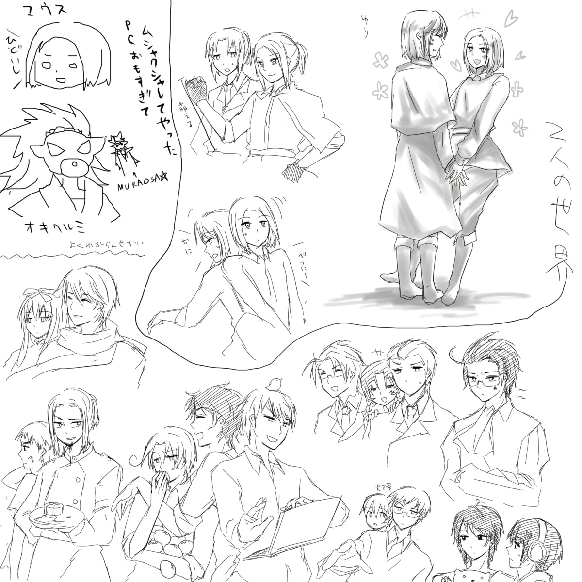 どうしようもないどうしようもないブログですPAGE | 24 25 26 27 28 29 30 31 32 33 34 | ADMIN | WRITE 2009.04.11 Sat 01:06:26 コーラうめえとりあえず描いてみたい人を描いてみようかな!と 上の二人を描いてから思って描いてみたら スペースが足りませんでしたもう少し考えろって感じですね! ここ数日ちょっと道を踏み外して折れたりときめいたり 道連れになったり滾ったりしてましたどうもこんばんは。 それにしてもリトアニアとポーランドかわいいです困る 北欧夫婦はマジで夫婦です和みまくりにも程がある。 そんでギリシャが大好きですすごいかわいいです。 まさかここまで全員かわいいとは思ってなかった ということをほぼ毎日言っていたような気がするし今でも思っている。ほんとにもう! あと貴族様と俺様とロシアさんが色んな意味で大好きすぎて困る 困惑しかないですまったく 右上は妖怪がでなくなった後のカムイで いい加減人が結構やってくるようになったので 全力で迎えてみましょうみたいな感じです。 サマイクルはともかくオキクルミにやらせることじゃないですね。 オキクルミがバカカッコ良すぎてサマイクルが愛しすぎて ウシワカが反則すぎてアマテラスさまはお変わりない美しさでした。 オキクルミ最初凡人オーラ全開だったのに後半すげえかっこいい人になってしまった。 サマイクルはずっとサマイクルでした、握手するときのサマイクルが一番かっこよかった。 だが疾風で転がりヤマト直前にやってしまうと湖に落ちる、それが村長クオリティ ボロクソいってるけどサマイクルのデザイン実はかなり好きなんです。真面目に。 いやー日本昔話のオキクルミが載ってる巻だけ引っ張り出して読んだの思い出す。 そういえばオキクルミってサマイクルの弟って言う説もあるんですね、すげー! あと神様マイクル説の中で、頭弱いよ!みたいなことを言われてて吹いた。 ウシワカはもう…もう…馬鹿野郎! ていうかこの人実年齢いくつなんだろう300歳くらい? 箱舟持ってきて逃げてそれからまた100年だから… どっちにしろ200年近く独りで罪の意識に苛まれていたということであって でも天神族のほうは感謝の念を忘れないとか言ってるのにそれが伝わってなかった あああああああ俺はお前が大好きだちくしょう!!!! タカマガハラ編はいつ出ますか!!!!!!!!!!!! それにしてもカムイのフィールドなんでこんなにかっこいいんだ たぎる・・・たぎるぞおおおおおお アニメの巷説百物語の百介の声が関さんだって知ってすごくみたくなりました。 あとディシディアやってライトつかってて思い出した、妄想代理人まだ全部見てない。 そういやつい前まで演出ロングにしたらクイックバトルで相手が喋ると言う事を知りませんでした。 どんだけ遅いんですか馬鹿ですか ライトが剣を構えるシーンの上腕二等筋が18禁に相当するエロさだと思う、何度みてもエロい。 一日24時間じゃ足りないぞ…36時間くらいにしてくれ…! PR 2009.04.04 Sat 03:10:03 やくがみさまのとおりみちタイトルは特に関係ないです。たまたま流れただけでした。